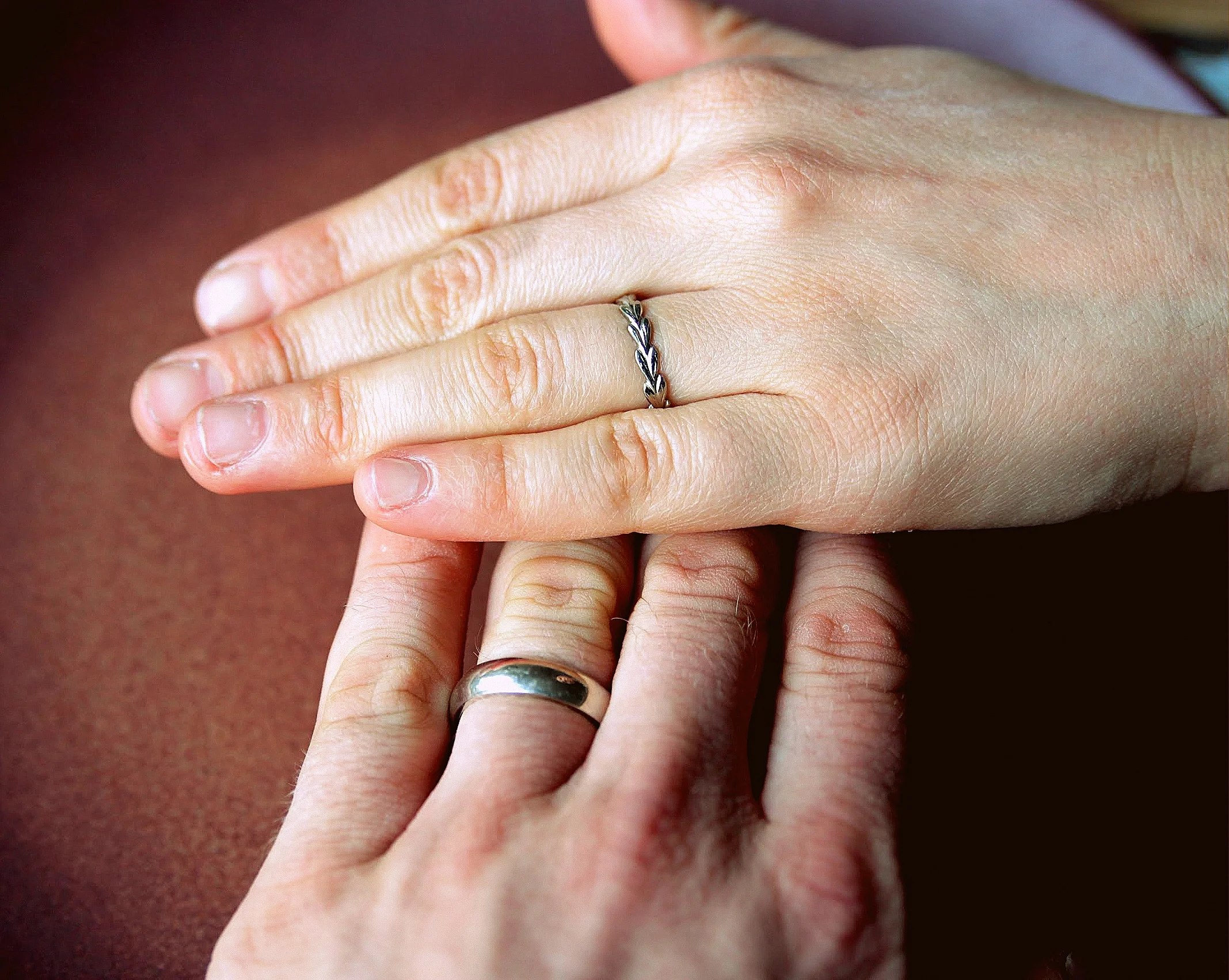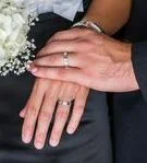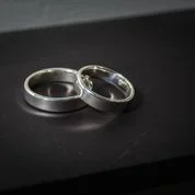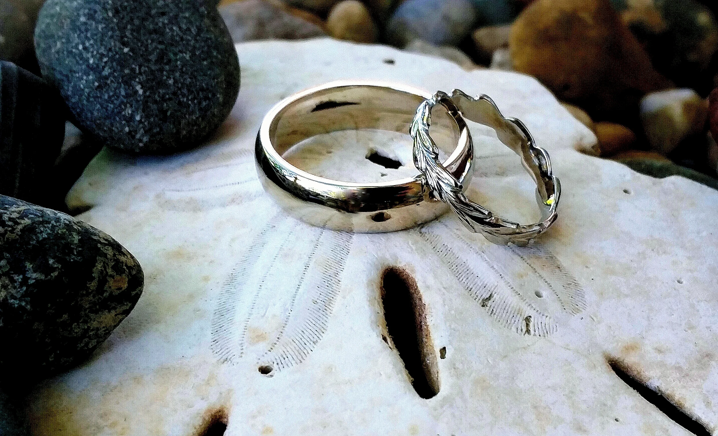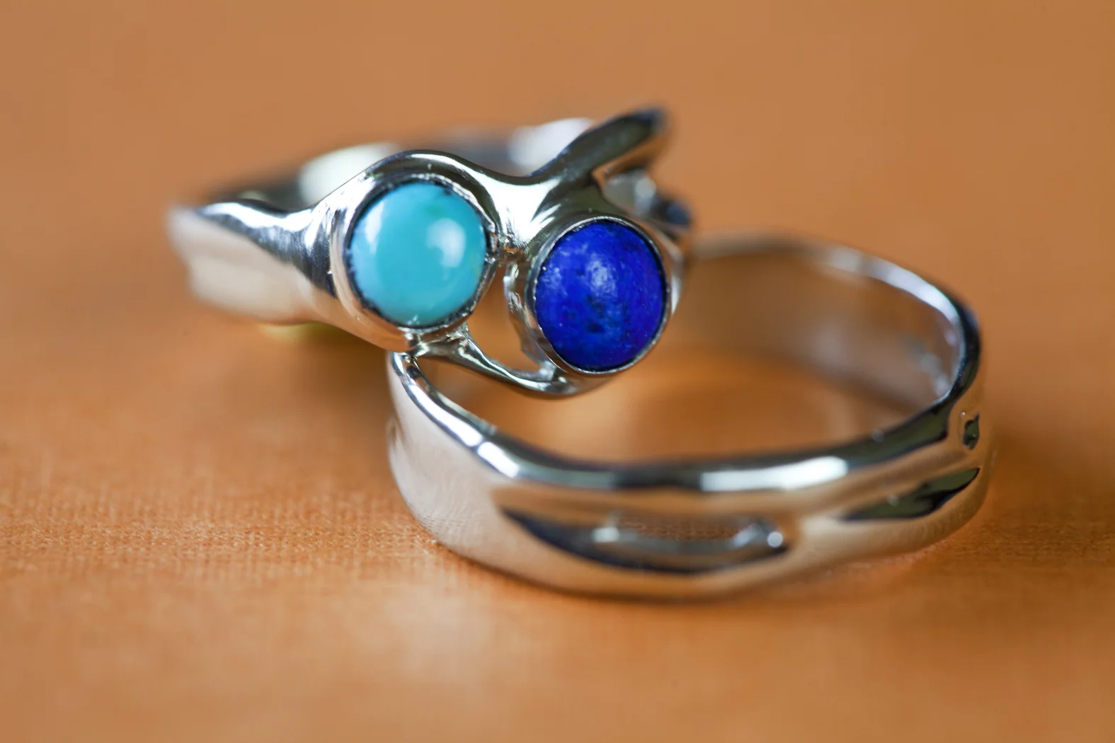 Wedding ring set; 14K white gold, turquoise, lapis lazuli